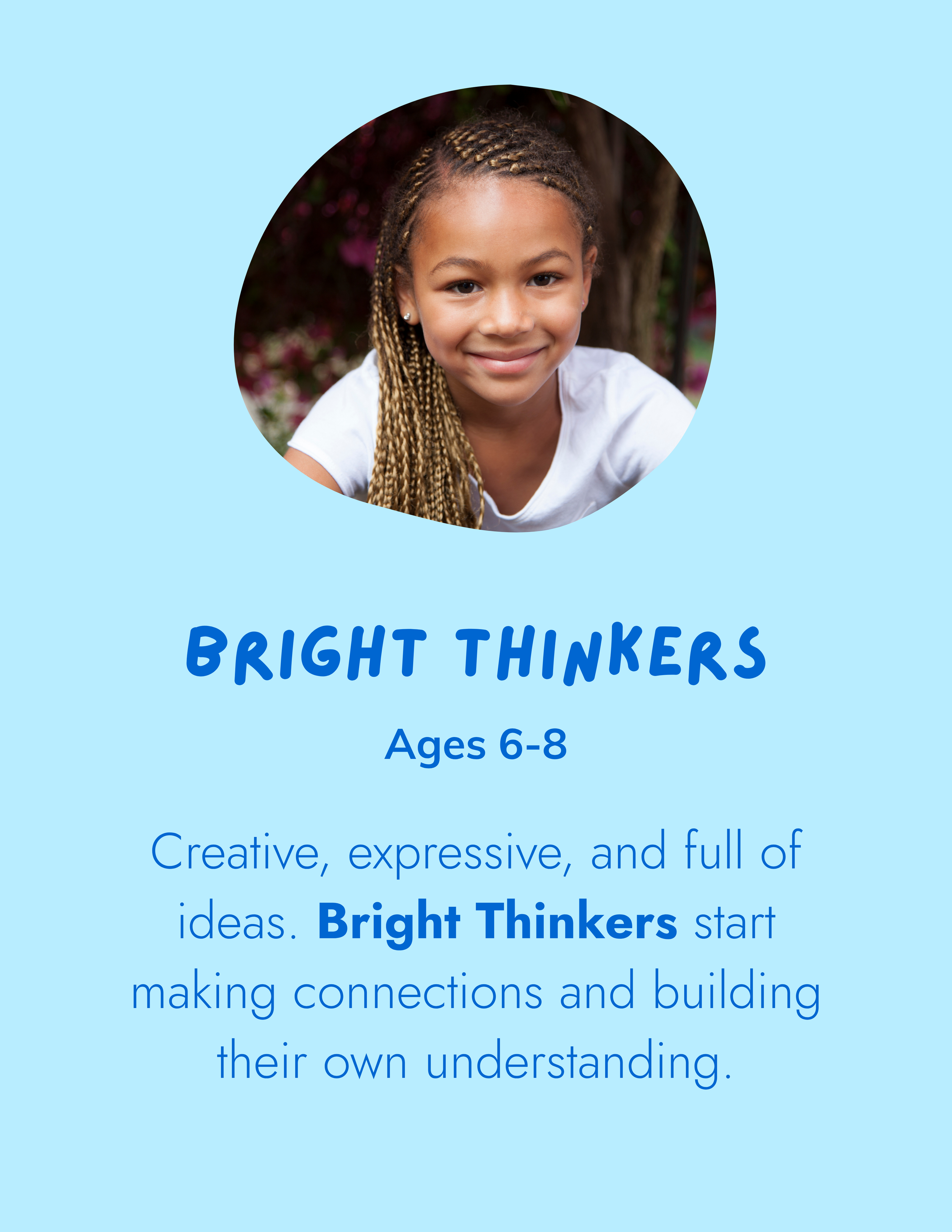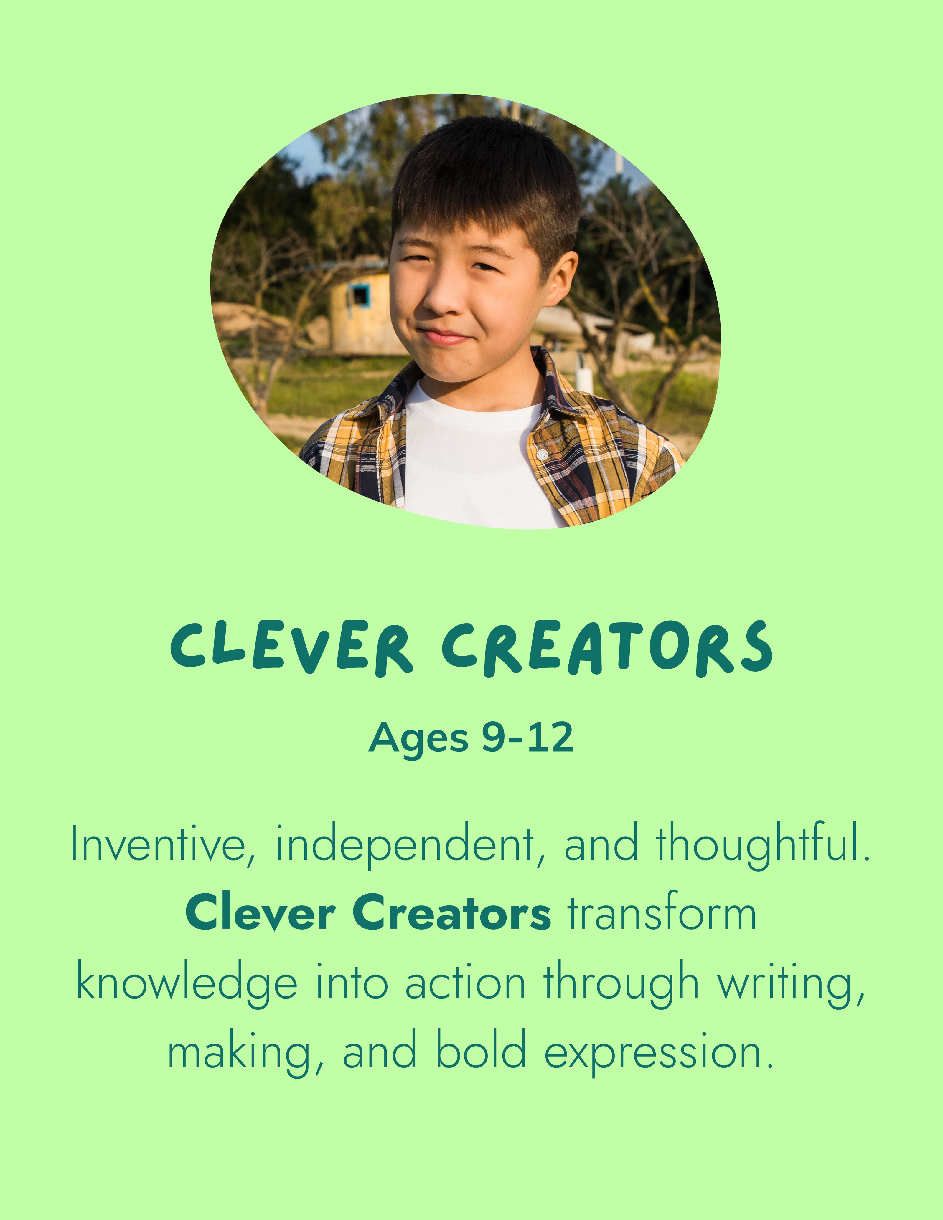 Every child learns differently and at their own pace. That’s why we organize all Jackalope Lab & Workshop activities into age-aligned groups. From our tiniest Wild Wonderers to our bold Clever Creators, each group is thoughtfully designed to meet learners where they are, with projects that spark curiosity, build confidence, and grow with them.