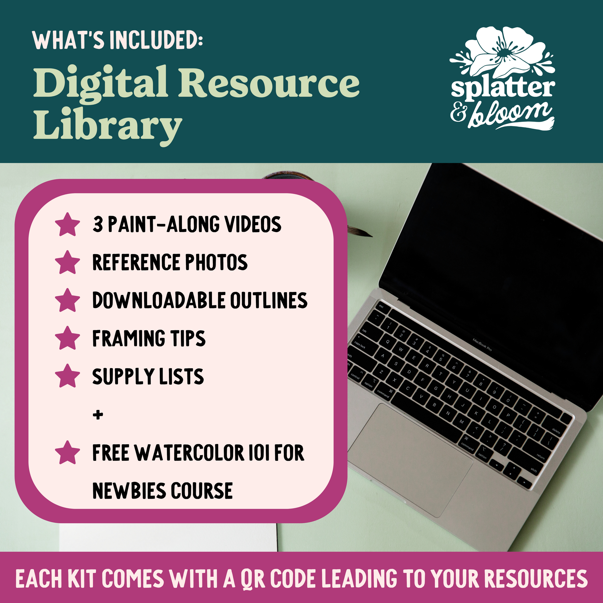 - Access to resources such as framing tips, supply lists, and a BONUS Watercolor Basics Course