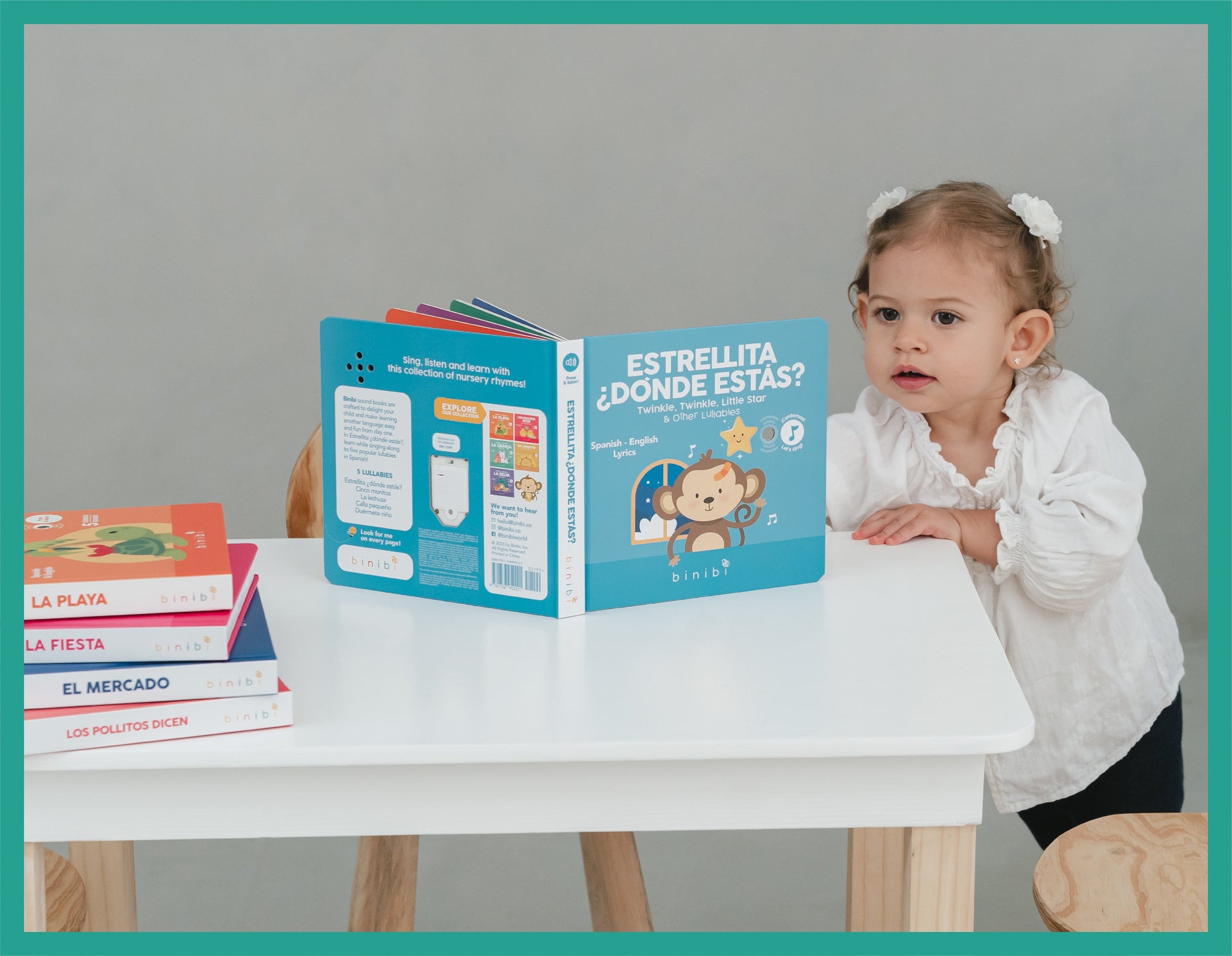 Soothe your little one with the calming sounds of Spanish nursery rhymes and gentle lullabies in ¿Estrellita, Dónde Estás?, a sweet and melodic bilingual children’s book that plays five beloved songs. This interactive sound book is designed to introduce children to Spanish through relaxing music, rhythm, and connection.