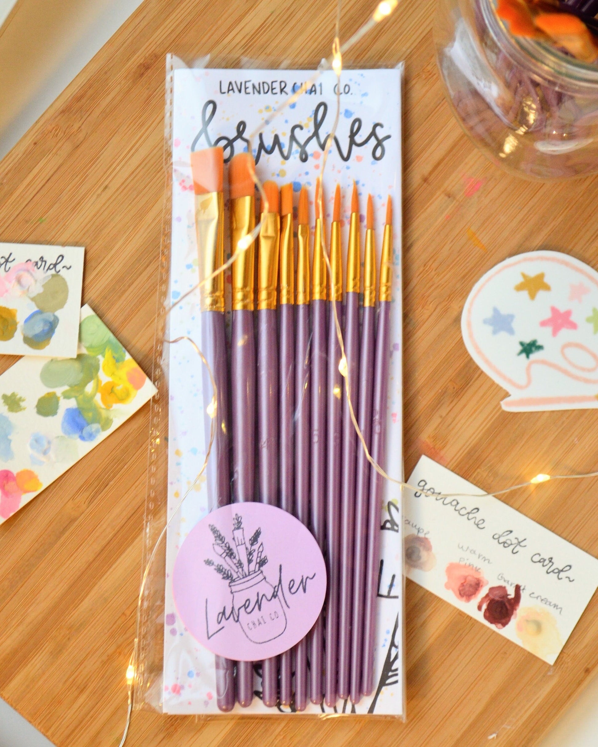 A new brush set with lavender handles! This brush set is perfect to pair with the Lavender Chai Mini Painting Kits!