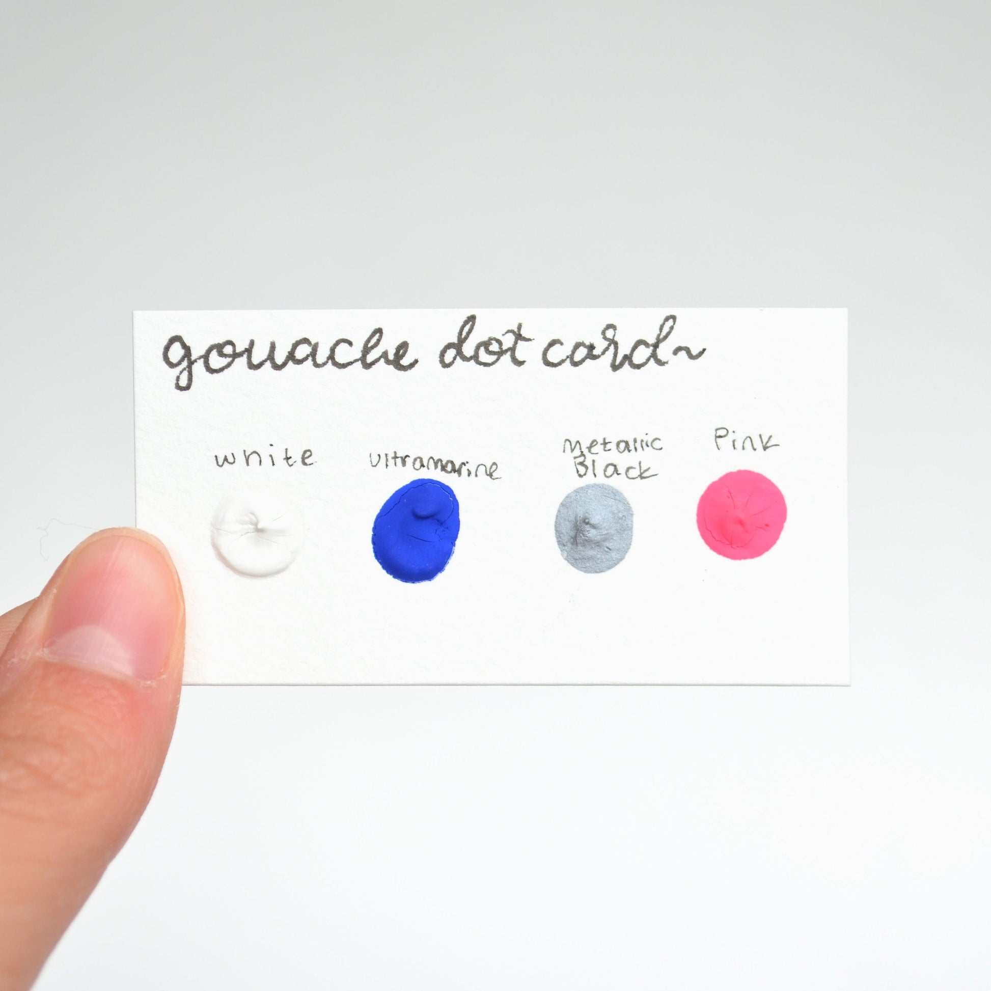 This kit comes with a pre-taped watercolor paper card, a mini gouache palette with four colors, and a sheet of instructions. The 'Galaxy' kit gouache palette includes white, ultramarine blue, metallic black, and pink.