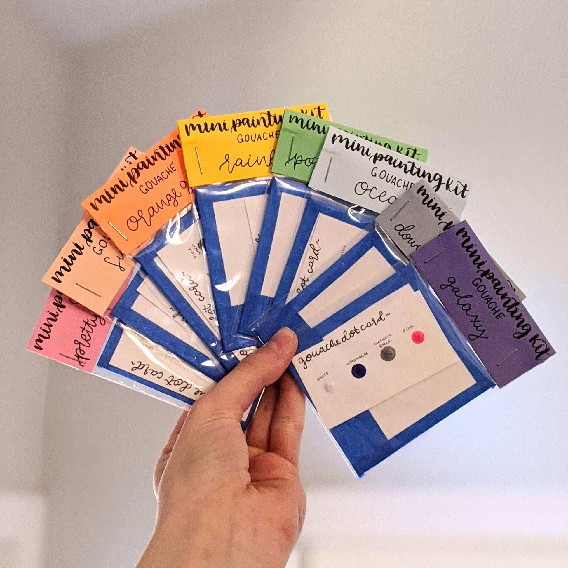 A curated set of the EIGHT original Gouache Mini Painting Kits that help make painting easy and fun. Each kit comes with everything you need to create charming mini watercolor paintings, perfect for beginners and seasoned artists alike.
