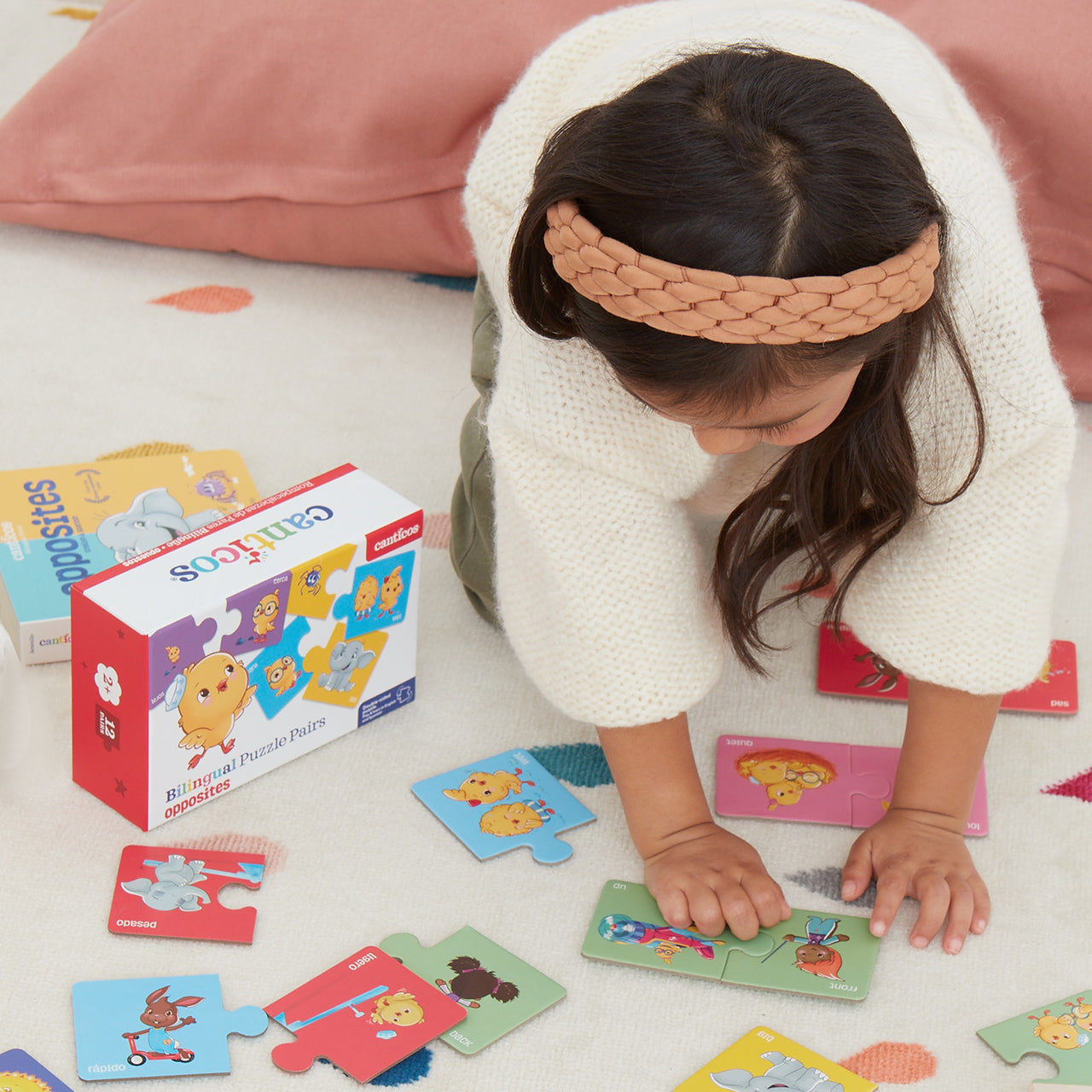 Make every day Opposite Day with this adorable gift bundle, designed to expose little ones to critical bilingual vocabulary through play. This bundle combines the Canticos classic Bilingual Firsts book, Opposites, with our Bilingual Opposites Puzzle Pairs to give your pollito the perfect jump start on their bilingual journey.